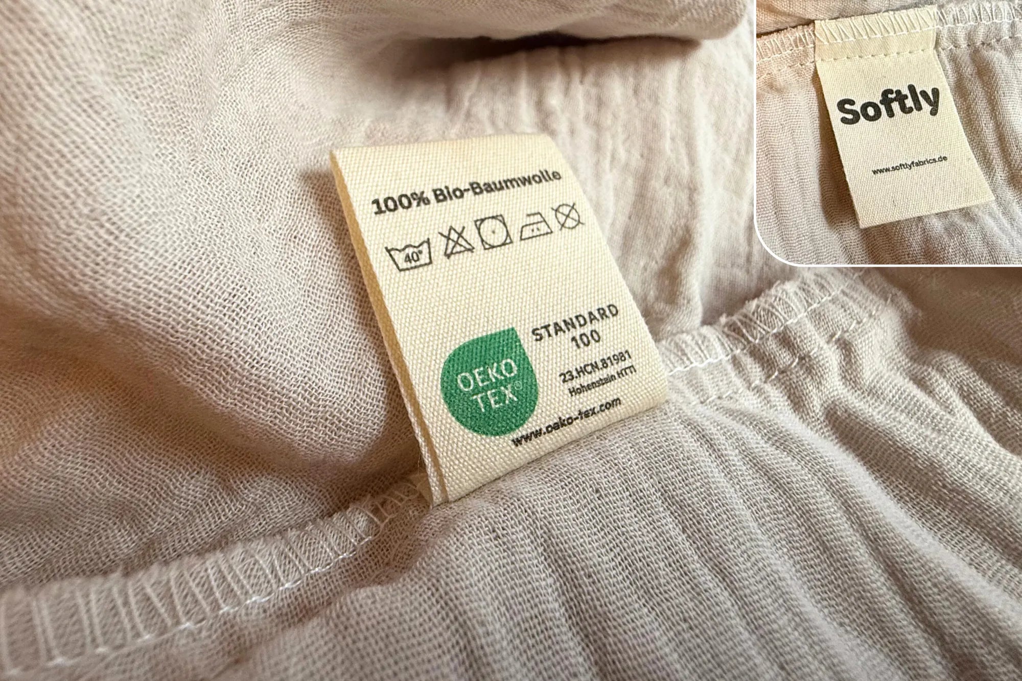 Musselin kann sich beim ersten Waschen um etwa 5 % zusammenziehen – das ist ganz normal bei reiner Baumwolle.